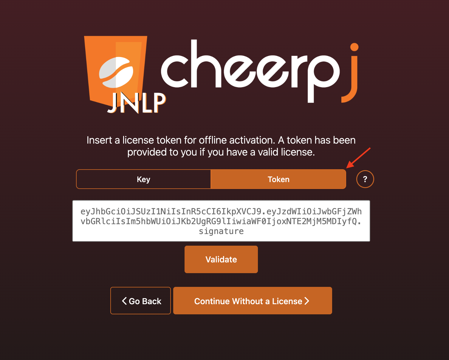 - License Token: If you received a license token, typically for technical evaluations or organizational licenses — see the Offline activation via License Token section.